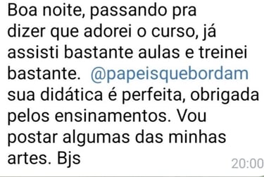 Não! A prática do bordado no papel não depende de dom. A filosofia do curso valoriza o aprendizado contínuo e a evolução, mostrando que qualquer pessoa pode bordar.